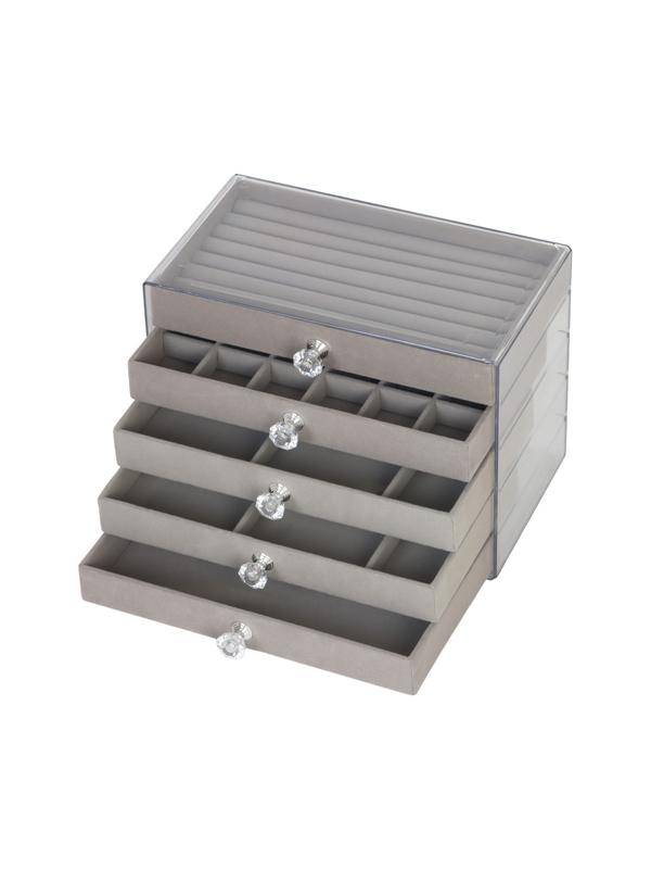 Стильный и надежный органайзер для бережного хранения украшений. Прочный пластиковый корпус. Мягкое бархатное покрытие. Вместительные уровни с разным количеством секций можно менять местами. Изящные декоративные ручки. Защита украшений от повреждений. Функциональность и элегантность.